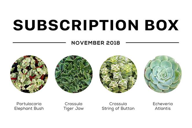 November has come and with them our Succulents Box for this month! Please welcome to your collection: Variegated Elephant Bush, Tiger Jaw, Crassula String of Button and Echeveria Atlantis.