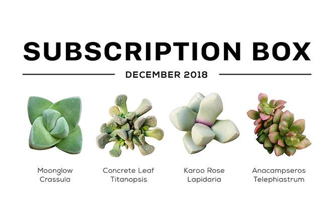 It's this time of the year, this month we have a special box featuring all rare and hard-to-find succulents: Crassula Moonglow, Concrete Leaf Titanopsis Calcarea, Karoo Rose & Anacampseros Telephiastrum Variegata.