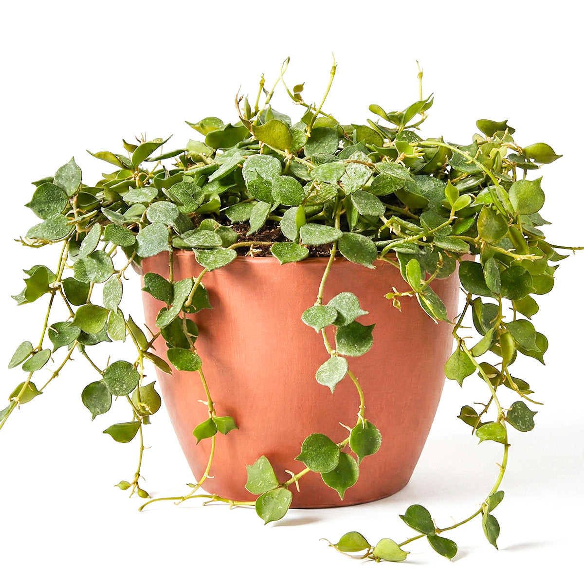 Hoya Curtisii has greyish trailing vines that spread freely and can reach up to 20" in length. This plant grows smaller than some other Hoyas and does not take much space. It looks perfect for both tall planters and hanging baskets.