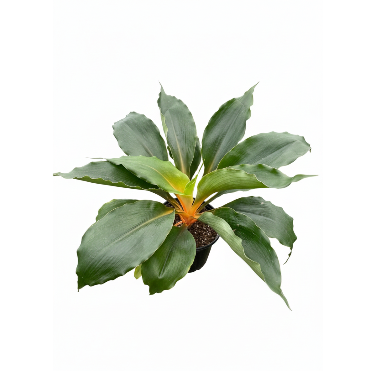 The most striking feature is the electric orange petioles (leaf stalks) and midribs. This color is natural and remains vibrant year-round, looking almost as if the plant is lit from within. Unlike the grassy texture of other spider plants, 'Fire Flash' has wide, lance-shaped leaves that give it a lush, "jungle" appearance.