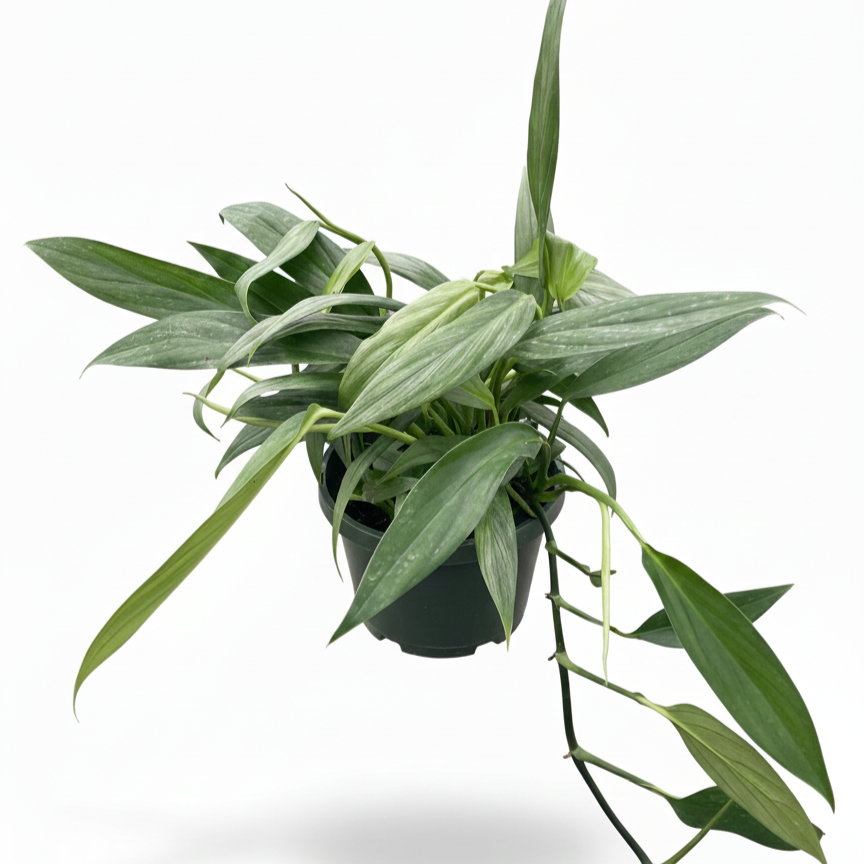 •  The Pothos ‘Silver Streak’ (Epipremnum amplissimum) is a sophisticated departure from your standard heart-shaped Pothos. Known for its elegant, elongated lance-shaped leaves and shimmering metallic veins, this plant brings a sleek, modern aesthetic to any indoor jungle.