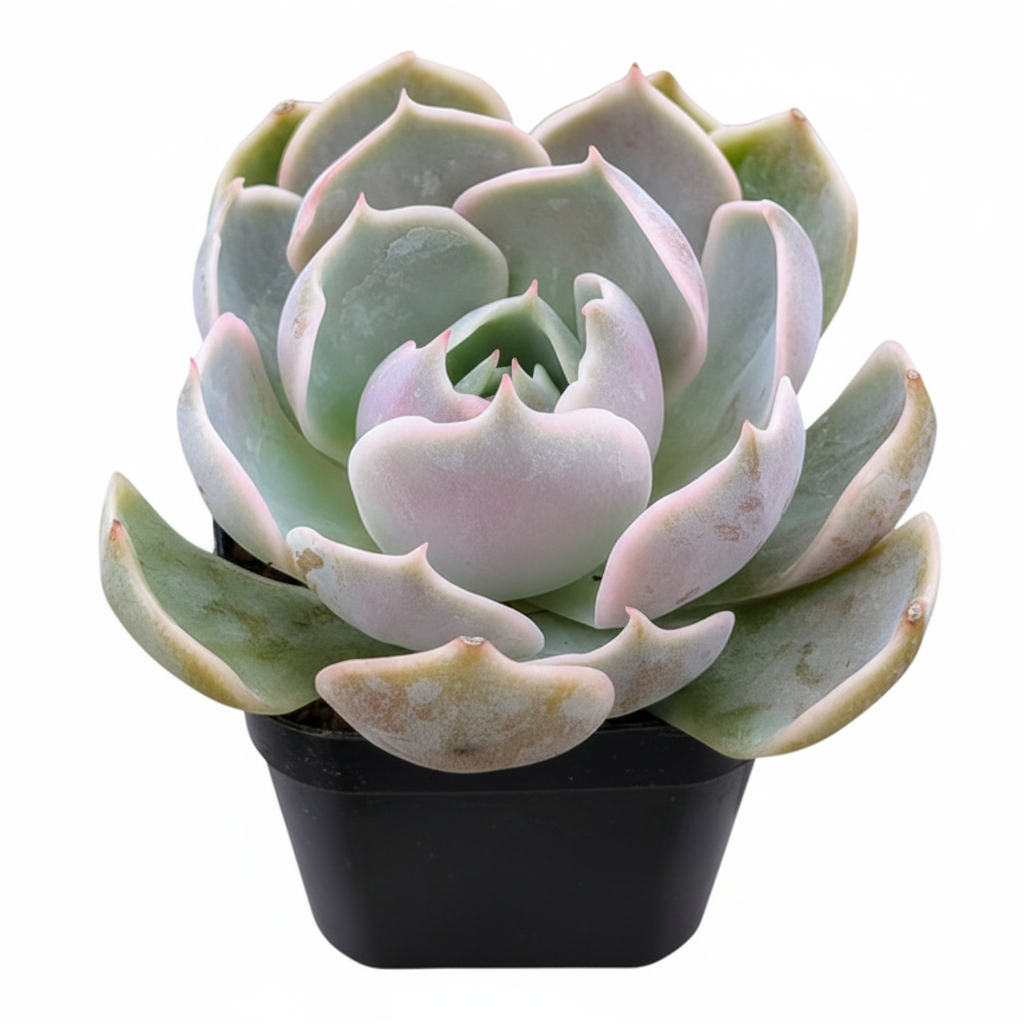 • Echeveria ‘Lotus’ is a graceful, rosette-forming succulent admired for its perfectly layered leaves that resemble a blooming lotus flower. With smooth, fleshy foliage in soft blue-green to pastel tones—often accented with subtle pink edges—this variety brings a calm, elegant presence to any succulent collection.