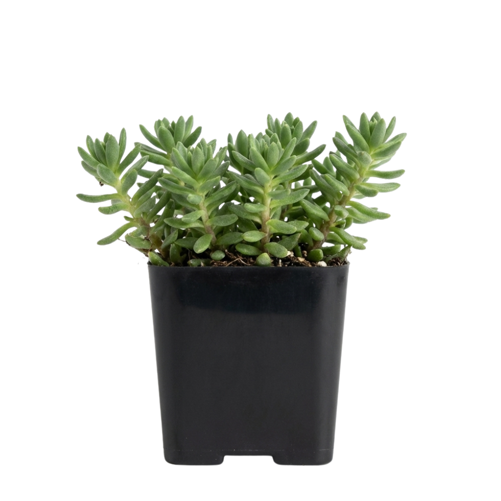 Sedum japonicum var senanense is a delicate, low growing succulent known for its fine textured foliage and compact, spreading habit. The small, rounded leaves form dense clusters along thin stems, creating a soft, moss like appearance. Its fresh green color can develop subtle golden or reddish tones when exposed to bright sunlight, adding gentle variation to its overall look. As it matures, this variety spreads easily, forming a dense mat that works well as ground cover, in rock gardens, or in shallow containers. During the growing season, it may produce tiny, star shaped flowers that add seasonal interest.