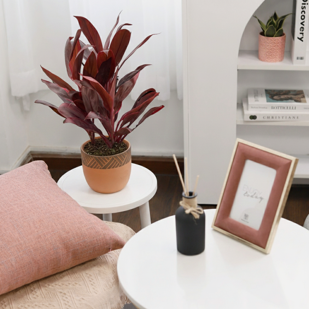 Its standout feature is the incredibly vibrant, strappy, and long foliage that boasts rich hues of deep purple and hot pink against a background of green, creating an instant, bold splash of color. It has an upright, commanding habit, making it an excellent floor plant or a stunning, colorful focal point.