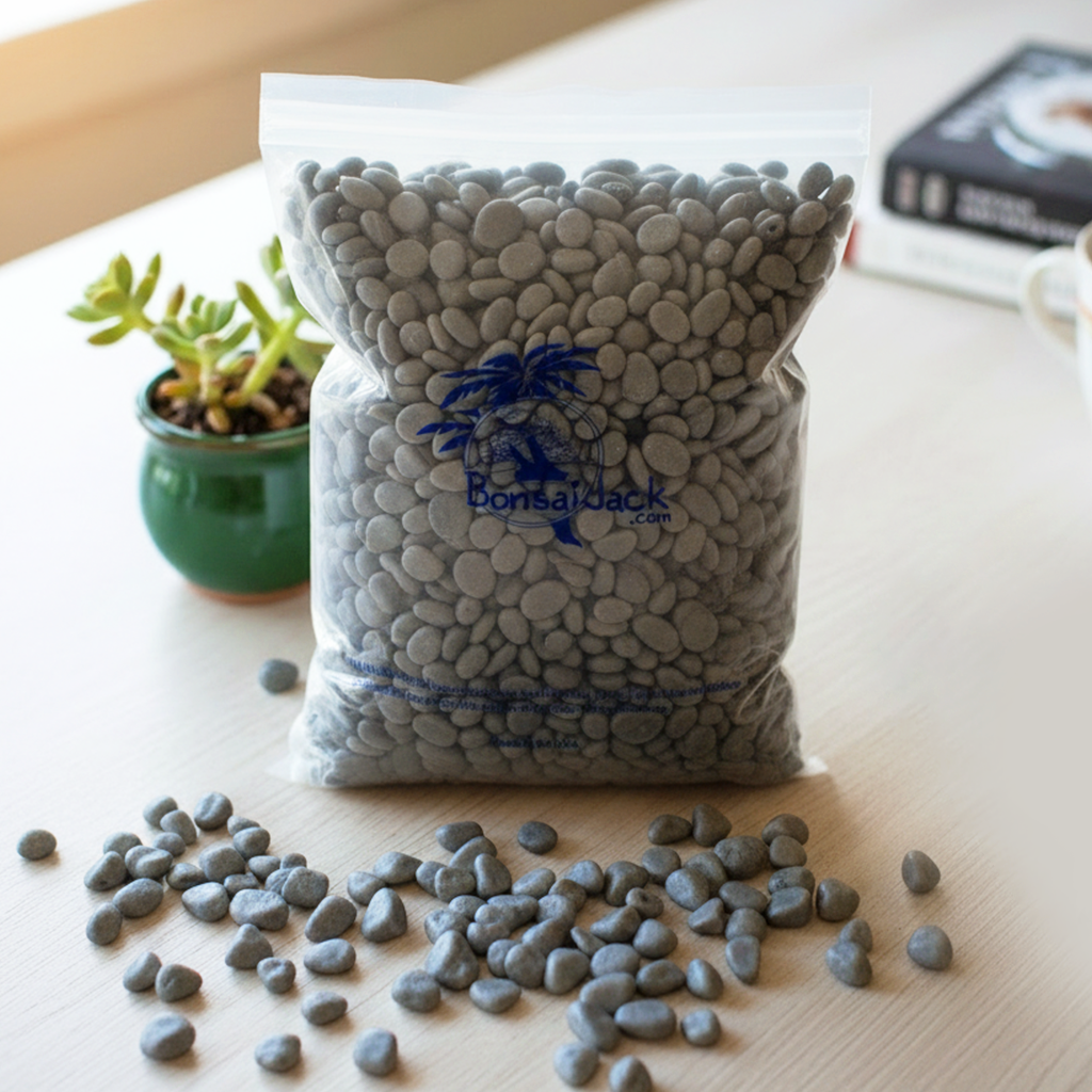 Carefully screened to a uniform size, these stones provide clean, even coverage across the soil surface, delivering a polished and intentional look. This top dressing is perfect for succulents, cacti, bonsai, lithops, and other decorative plantings where contrast and visual balance matter.